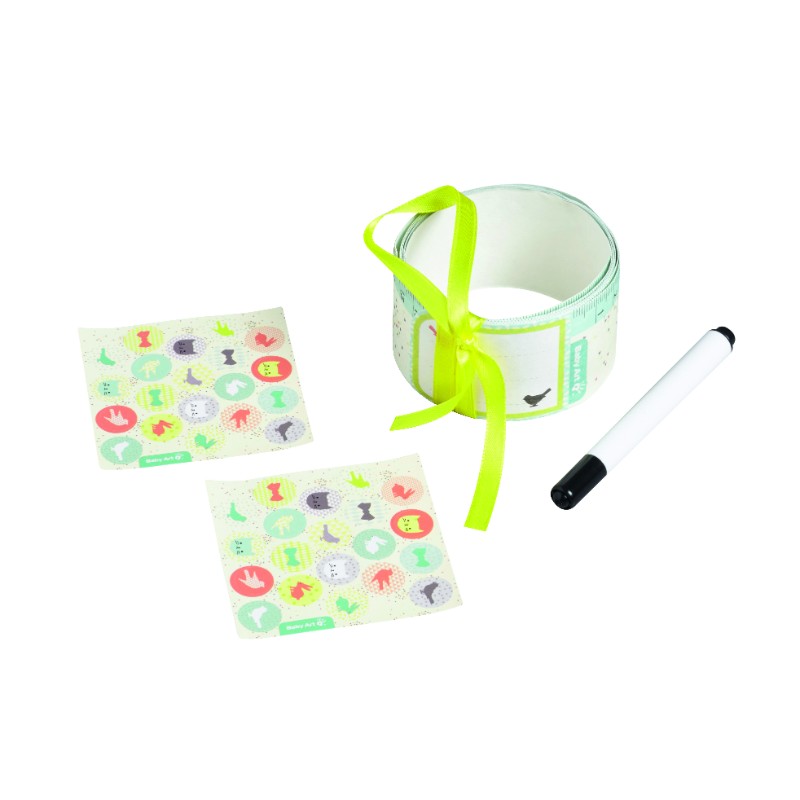 Περιέχει μεζούρα , αυτοκόλλητα και μαρκαδόρο ώστε να σημειώνετε κατά την διάρκεια της εγκυμοσύνης