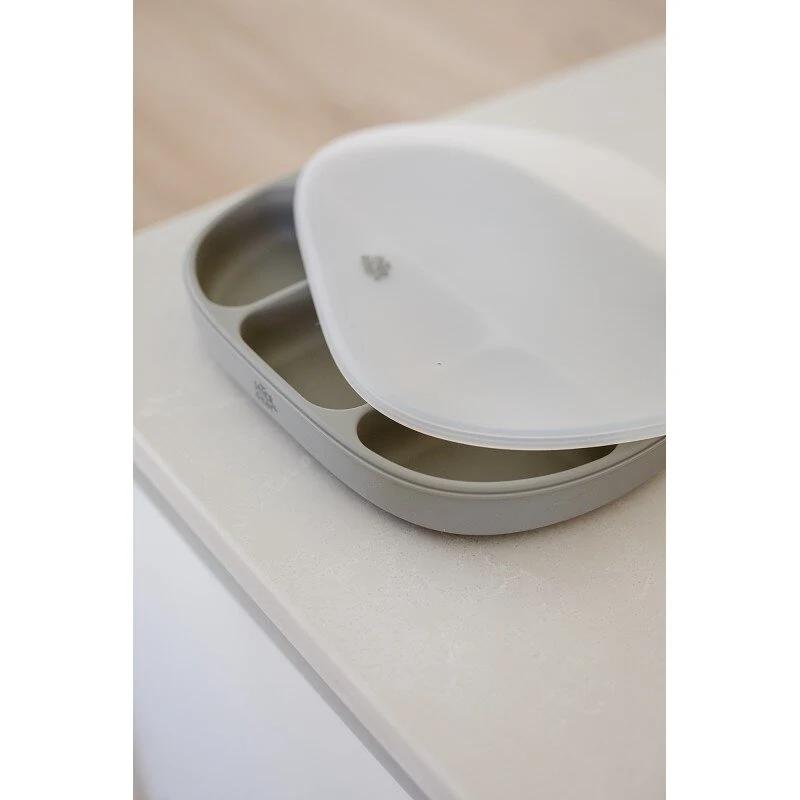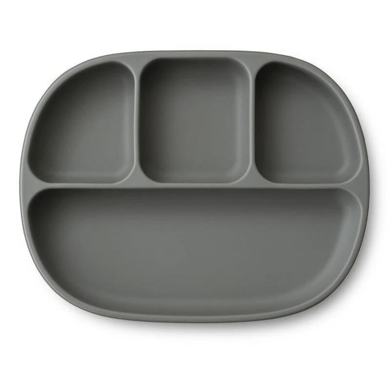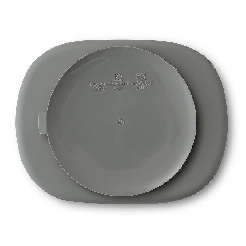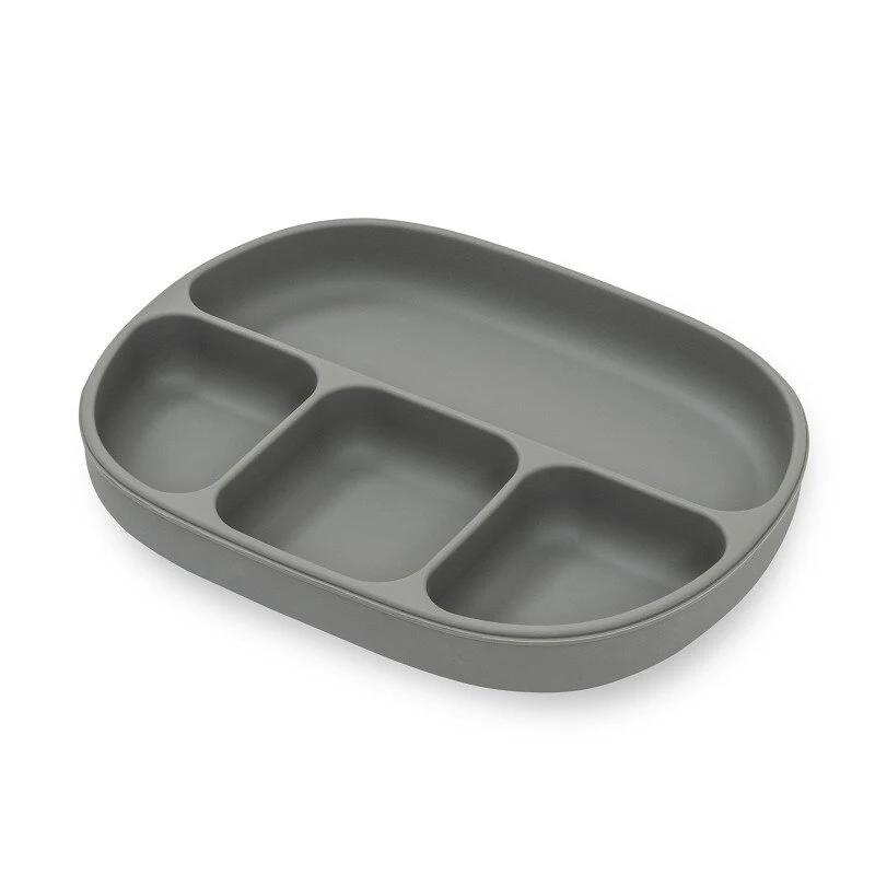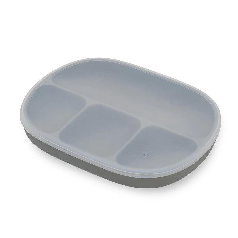 Αντιολισθητικό Πιάτο Σιλικόνης Με Θήκες Και Καπάκι Petrol Grey Interbaby