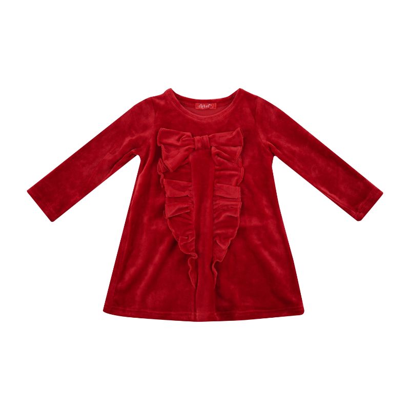 Μπεμπέ φόρεμα σε κόκκινο χρώμα για κορίτσι χειμερινό με φιόγκο και σχέδιο