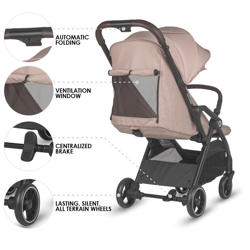 κιλά – συμπαγής αυτόματη αναδίπλωση – 4 θέσεις στην πλάτη – ποιοτικά υλικά, κατάλληλο πάπλωμα – Θόλος με εξαερισμό και προστασία UV – μειωμένο βάρος – σκελετό αλουμινίου, εγκεκριμένο με τα τελευταία πρότυπα της