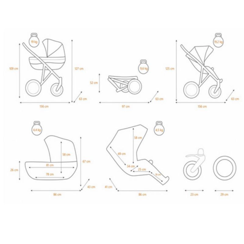 σετ καροτσιού 3 σε 1 περιλαμβάνει το σκελετό, 2 καθίσματα καροτσιού,2 καλαθούνες