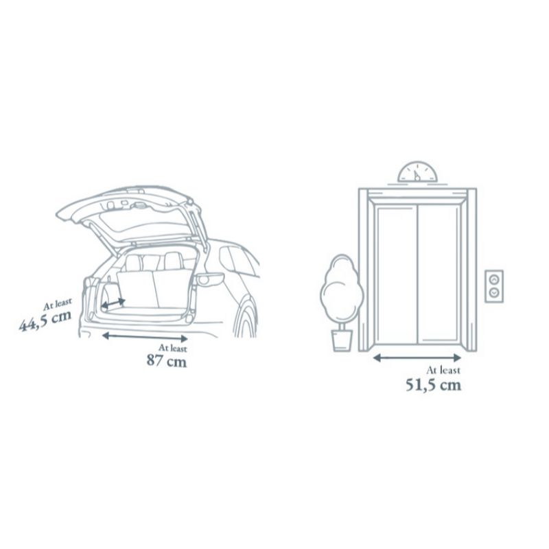 - Διαστάσεις κλειστού καροτσιού (προς τα έξω): 51,5 x 87 x 42 εκ. (πλάτος x