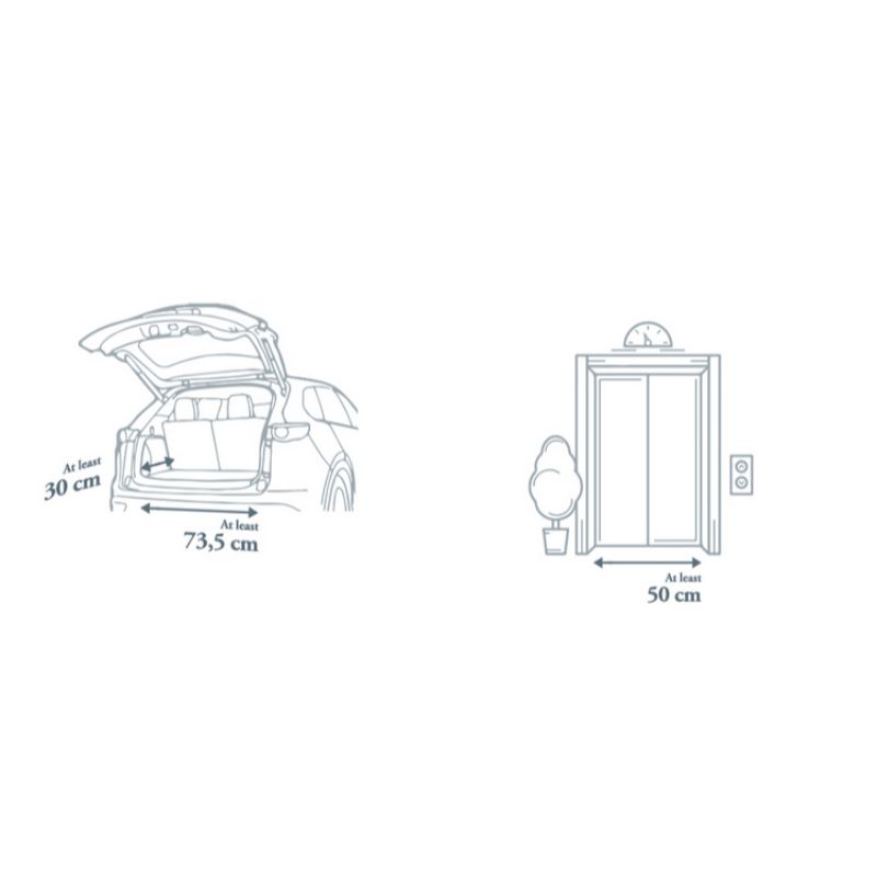 - Διαστάσεις διπλωμένου καροτσιού (προς τον κόσμο): 50 x 73,5 x 30