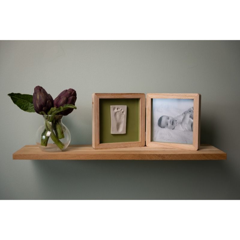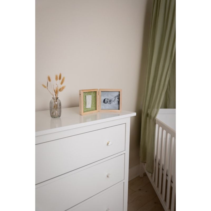 Συνδυάζει αρμονικά ένα αποτύπωμα μωρού και μια φωτογραφία. Το δίπλό κάδρο