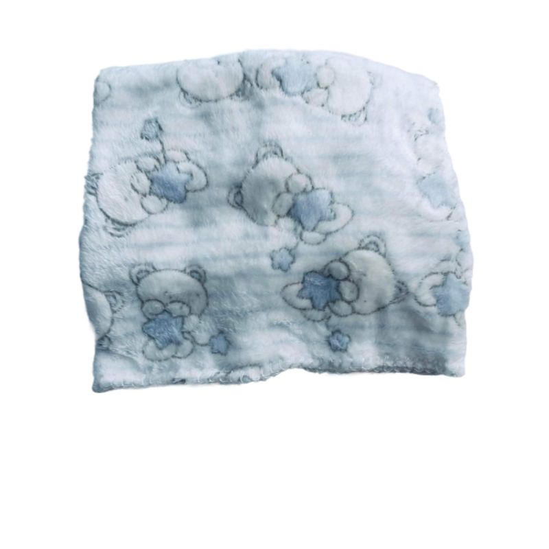 Κουβέρτα για αγόρι, σιέλ βελουτέ με ανάγλυφο σχέδιο αρκουδάκια και πολύ απαλό άγγιγμα.