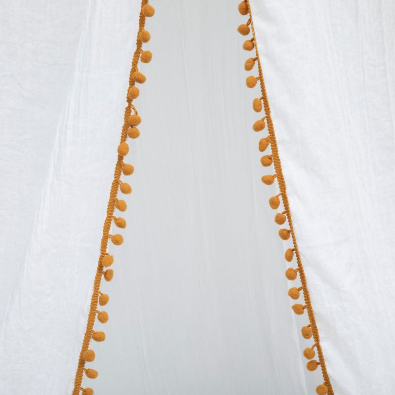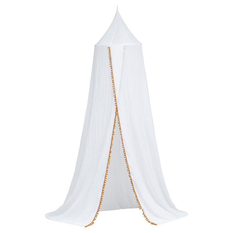Λευκή κουνουπιέρα με μουσταρδί pompons,