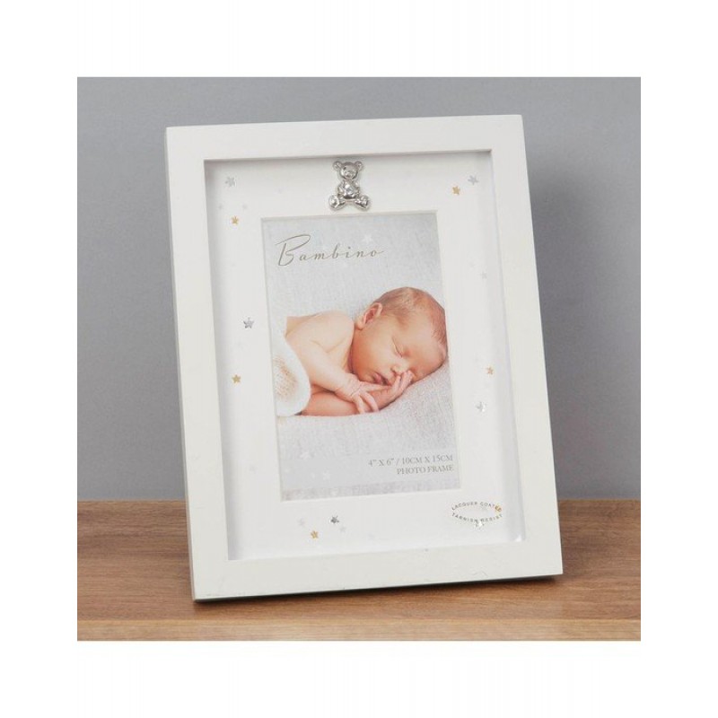 - Το πλαίσιο είναι διακοσμημένο με χρυσά και ασημένια αστέρια και ένα ασημένιο κρυστάλλινο αρκουδάκι