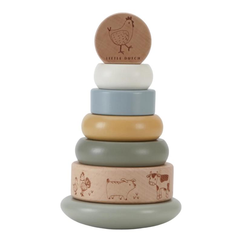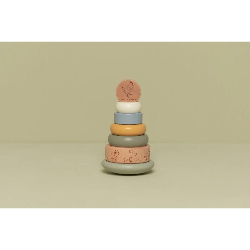 Ξύλινη πυραμίδα ταξινόμησης και ταλάντωσης για παιδιά, με θέμα τη