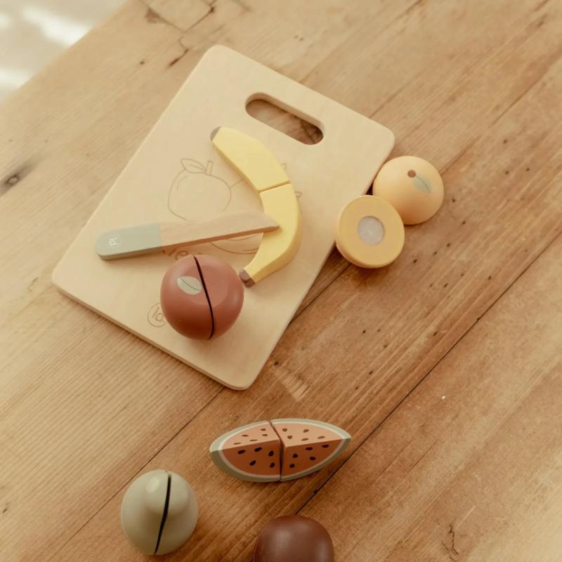 - Περιέχει 8 τεμάχια: ξύλο κοπής, ξύλινο μαχαίρι, μήλο, μπανάνα, ακτινίδιο,