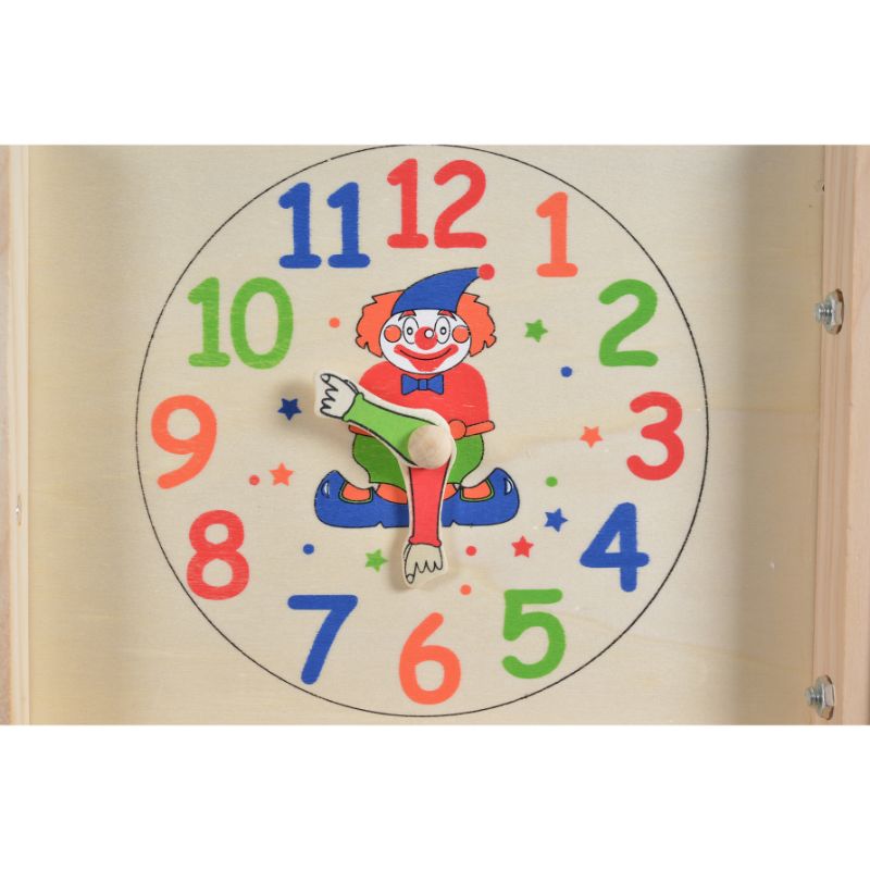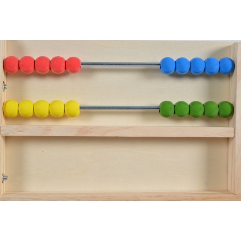 έχει άβακα, ρολόι και κιμωλίες.
