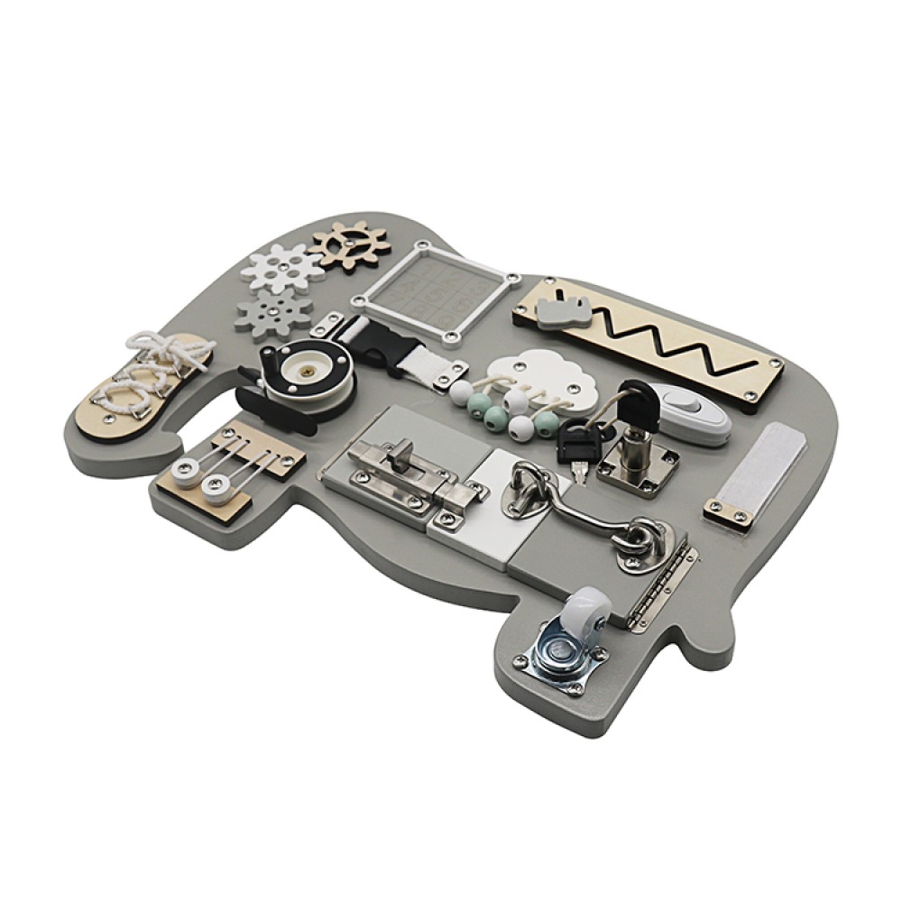 Ξύλινη σανίδα δραστηριοτήτων με διάφορες δραστηριότητες όπως γρανάζια,