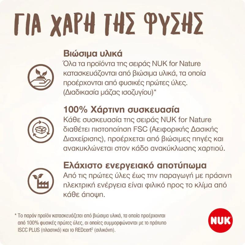 προϊόντα NUK for Nature χρησιμοποιούμε 100% χάρτινες ανακυκλώσιμες συσκευασίες,