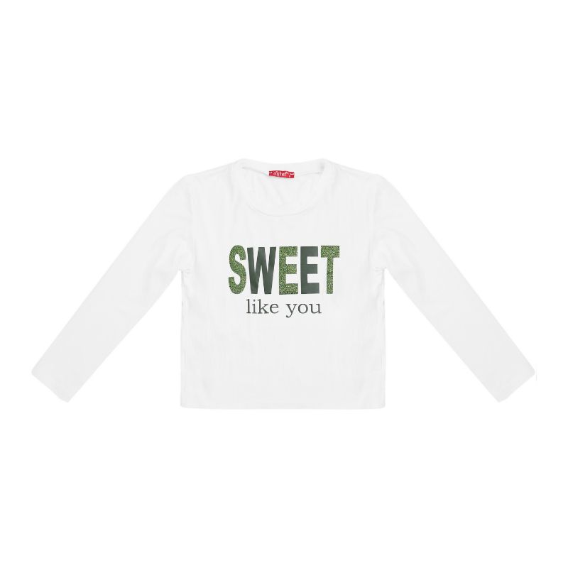 Μπλούζα για κορίτσι χειμερινή μακρυμάνικη σε εκρού χρώμα με λαδί στάμπα.