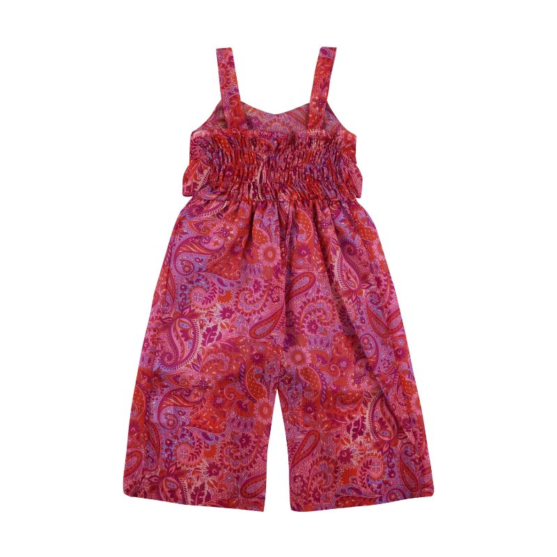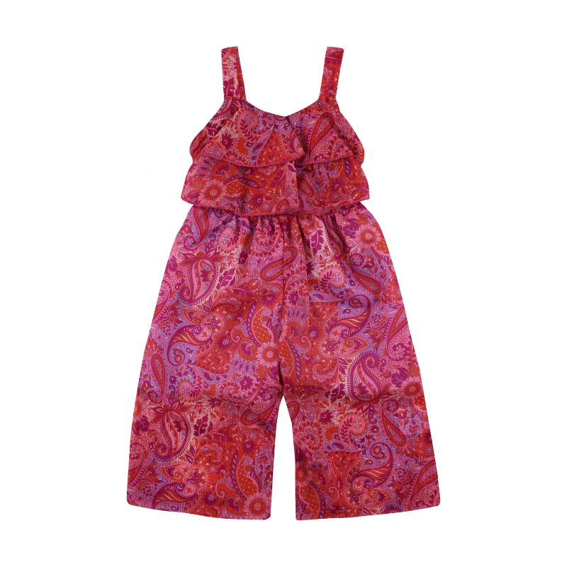 Ολόσωμη φόρμα μπεμπέ για κορίτσι καλοκαιρινή σε φούξια χρώμα, με εμπριμέ