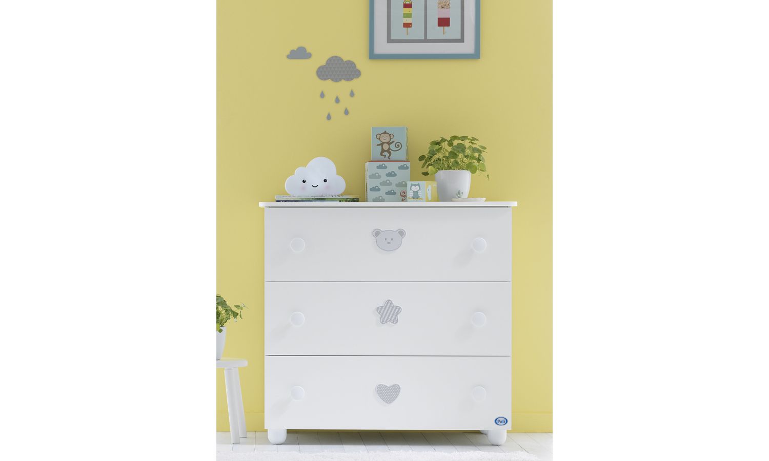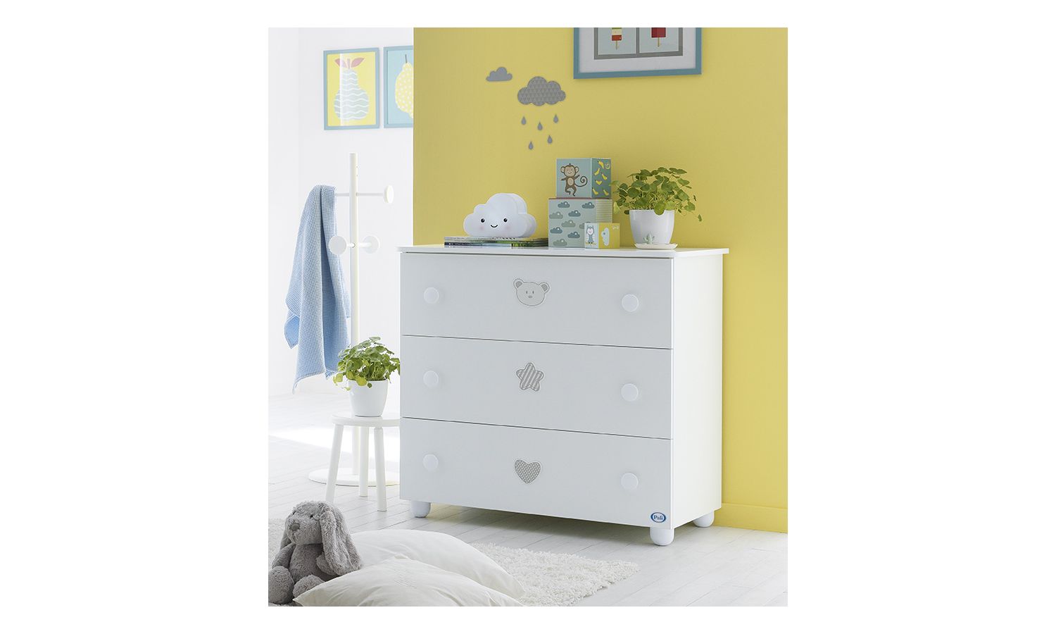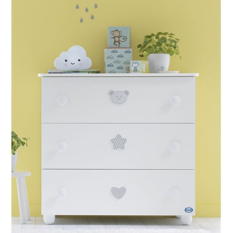 Η συρταριέρα της σειράς διαθέτει 3 ευρύχωρα, πρακτικά συρτάρια, ώστε να χωράει τα πράγματα του μωρού σας, ενώ η μεγάλη επιφάνειά της προσφέρει τη δυνατότητα να τοποθετήσετε αλλαξιέρα και αξεσουάρ του μωρού σας στο πάνω μέρος της.