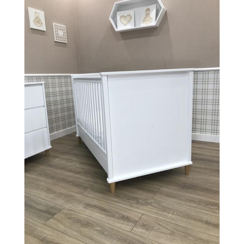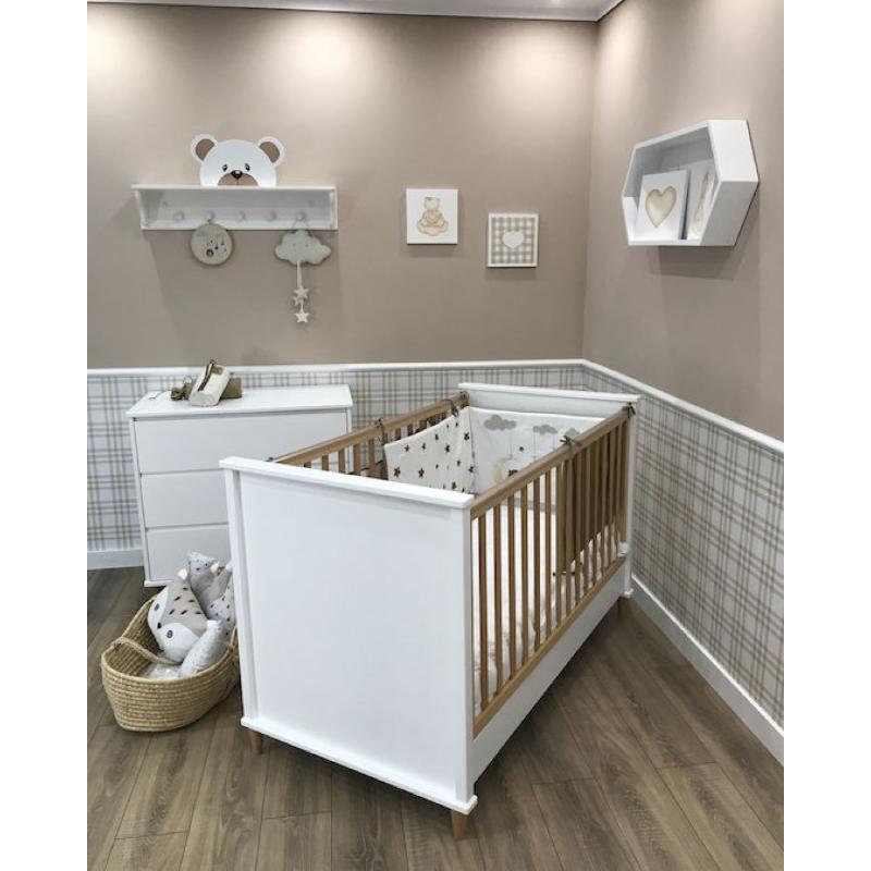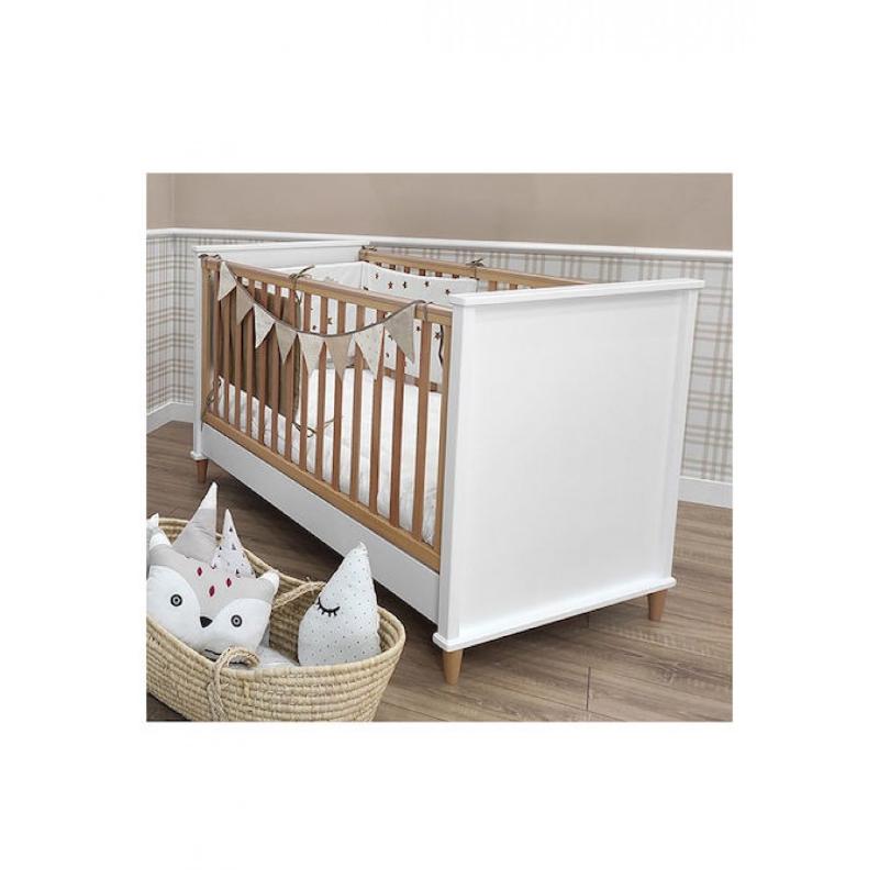 κρεβάτι μετατρέπεται βγάζοντας τα κάγκελα σε προεφηβικό κρεβάτι για να μπορεί να