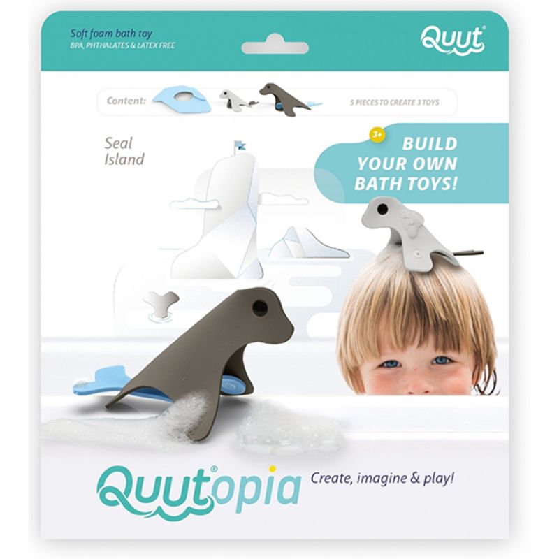 Τρισδιάστατο παιχνίδι για το μπάνιο, από τη νέα σειρά Quutopia της εταιρίας Quut. Τα κομμάτια του απεικονίζουν χρωματιστές φώκιες, με τις οποίες τα μικρά παιδιά διασκεδάζουν παίζοντας κατά τη διάρκεια του μπάνιου! Παράλληλα βελτιώνουν τις κινητικές τους δεξιότητες, συνδυάζοντας διαφορετικά σχήματα και χρώματα και δημιουργώντας υπέροχες ιστορίες.