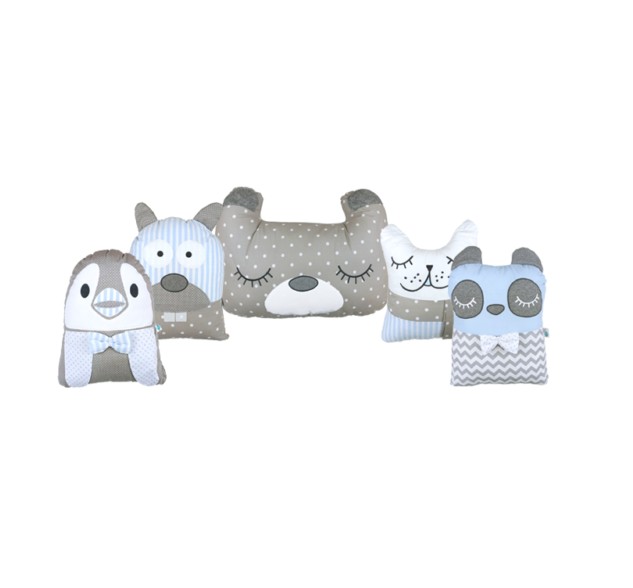 Όλα τα ζωάκι αλλά και το μαξιλάρι διαθέτουν κορδονάκια ώστε να δένουν στην κούνια του μωρού και να το προστατεύουν από τυχόν χτυπήματα στα κάγκελα του κρεβατιού.
