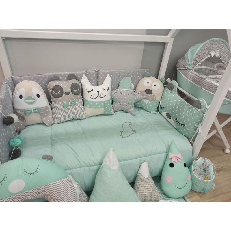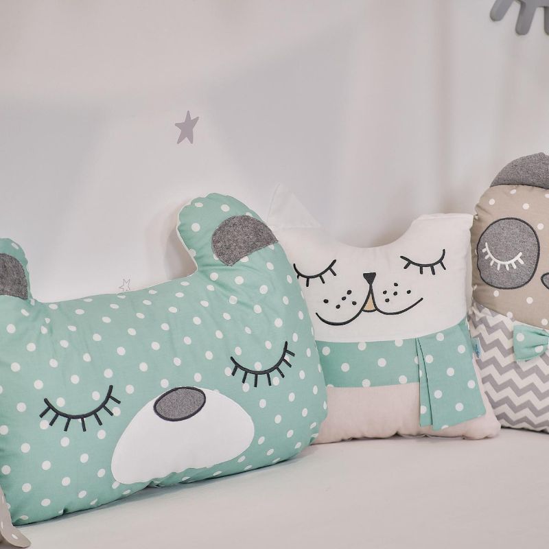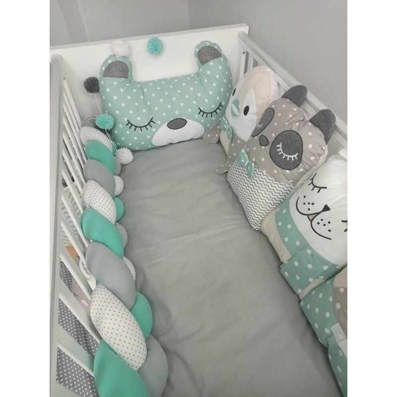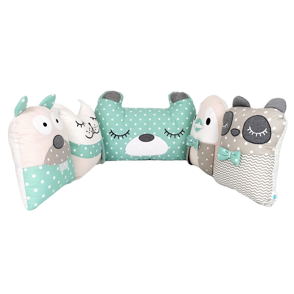 Όλα τα ζωάκι αλλά και το μαξιλάρι διαθέτουν κορδονάκια ώστε να δένουν στην κούνια του μωρού και να το προστατεύουν από τυχόν χτυπήματα στα κάγκελα του κρεβατιού.