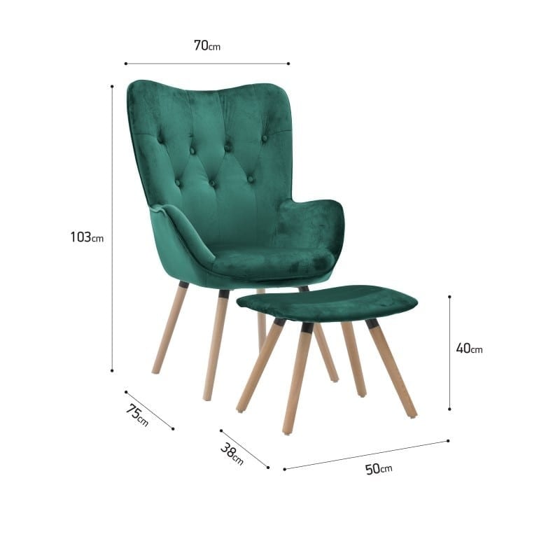 Πολυθρόνα Με Υποπόδιο Βελούδινη Κυπαρισσί 70x75x103 Inart