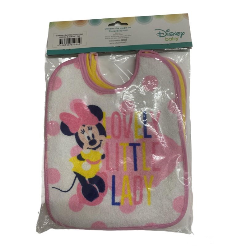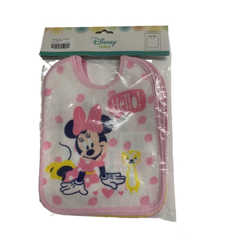 Συσκευασία με 6 σαλιάρες πετσετέ με αδιάβροχο προστατευτικό και κορδόνι, ροζ και κίτρινο, με θέμα την Minnie