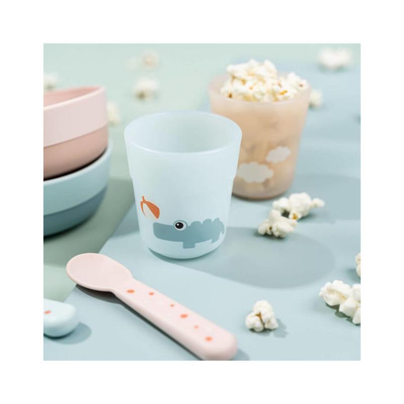 Περιλαμβάνει ένα μπωλ με αντιολισθητική βάση, ένα ημιδιαφανές ποτηράκι και ένα