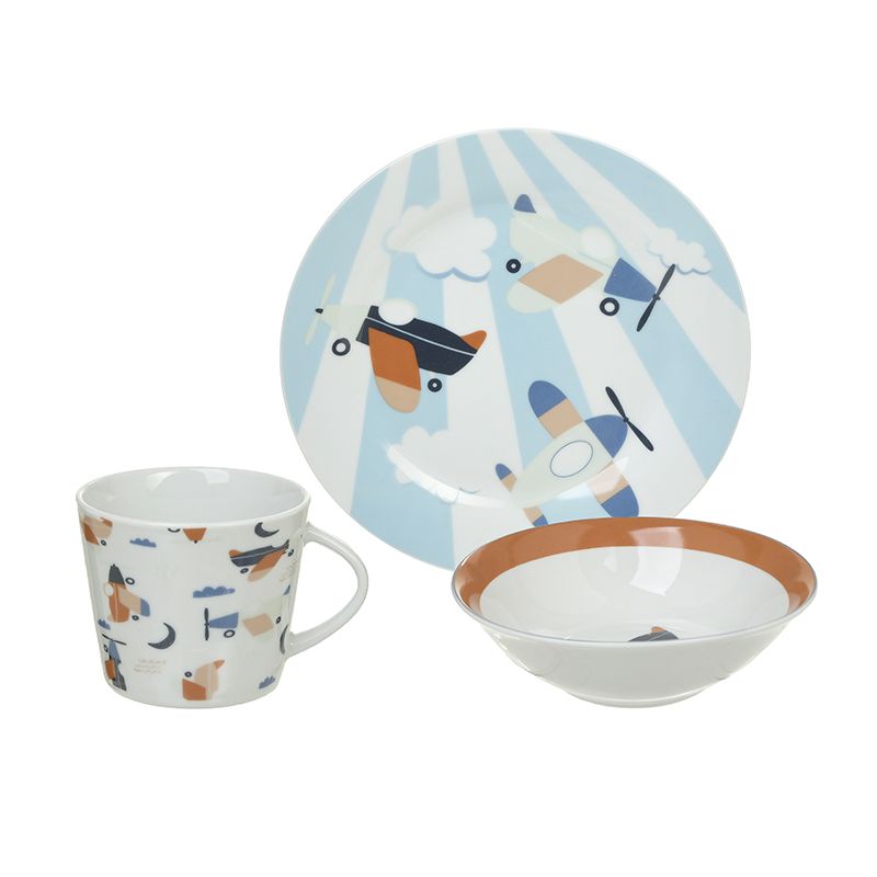 αεροπλάνα. Το σετ αποτελείται από ένα ρηχό πιάτο, ένα βαθύ πιάτο και μία κούπα.