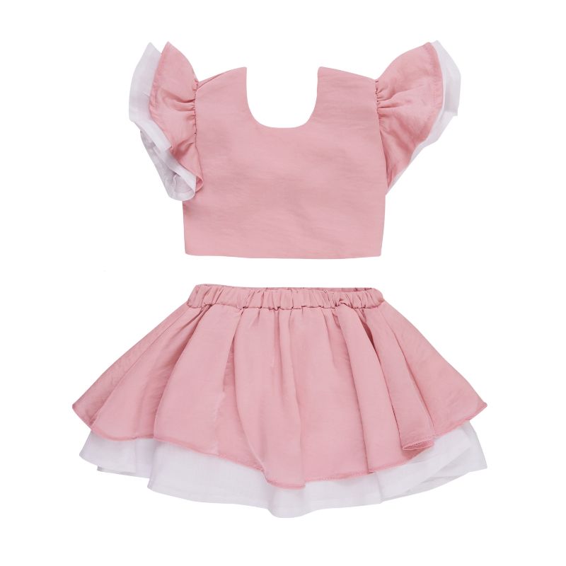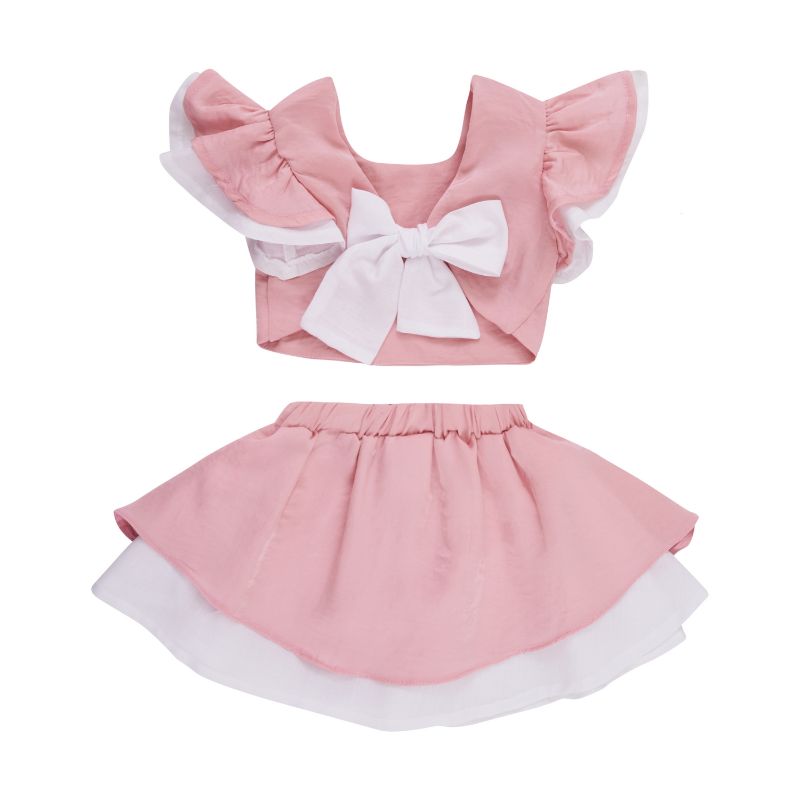 Σετ για κορίτσι καλοκαιρινό μπεμπέ σε ροζ χρώμα με φούστα με βολάν και
