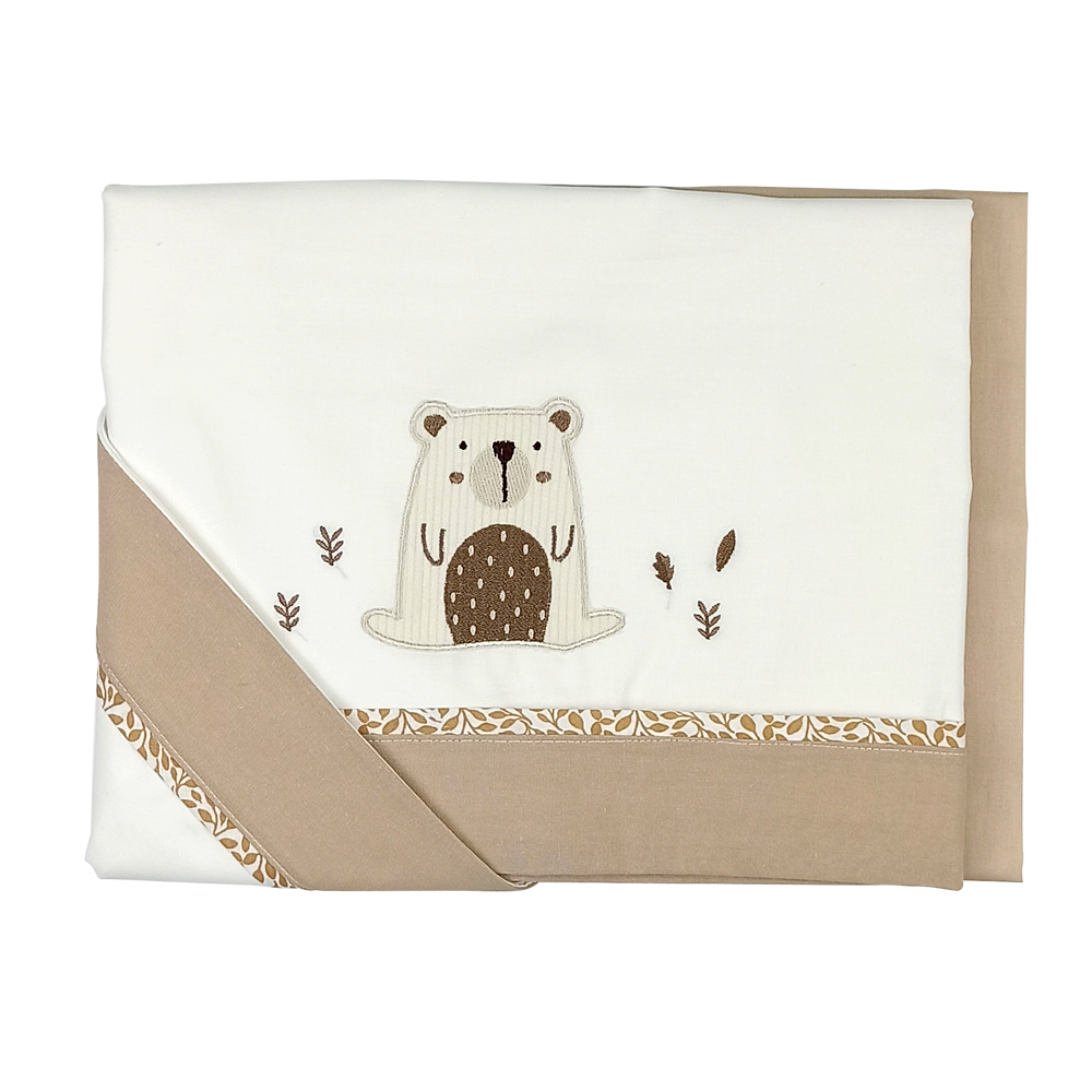 Το σετ περιλαμβάνει ένα πανωσέντονο διάστασης 110cm x 150cm, μια μαξιλαροθήκη