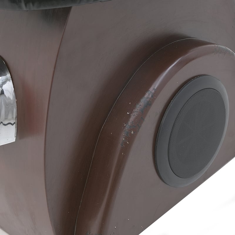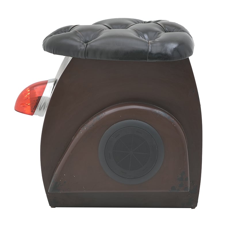 Μεταλλικό και PU σκαμπώ, με ενσωματωμένο ηχοσύστημα bluetooth, σε μοντέρνα γραμμή, χρώματος καφέ, και σχήματος ορθογώνιου, φτιαγμένο από ποιοτικά υλικά.