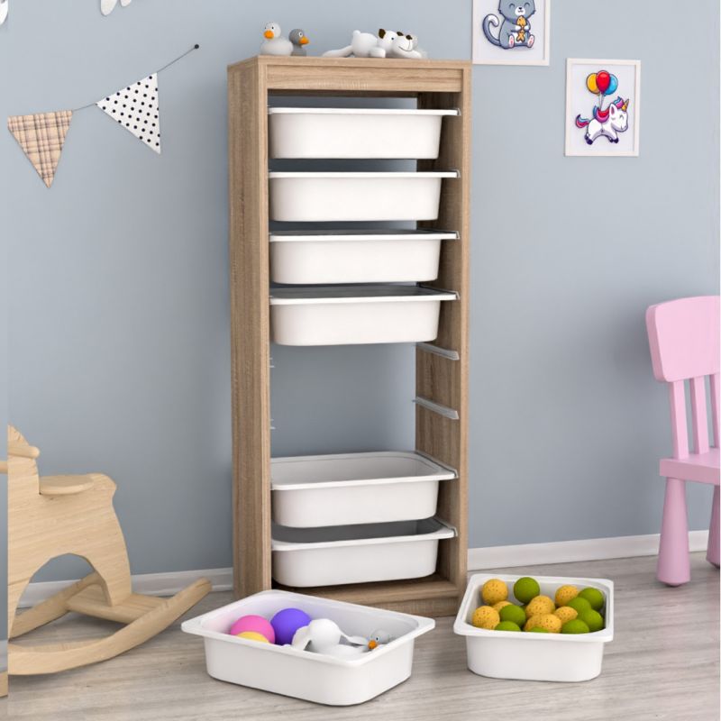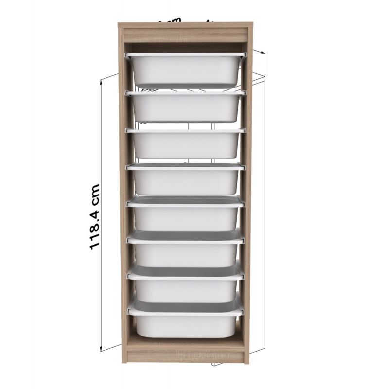 μελαμίνη σε χρώμα SONAMA, με 8 ΛΕΥΚΑ συρτάρια από πολυαιθυλένιο (πλαστικό).