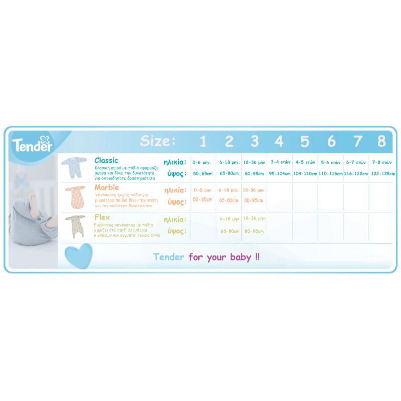 Η Tender αποτελεί εταιρία παιδικών βαμβακερών ειδών με έτος ίδρυσης το 1981. Με